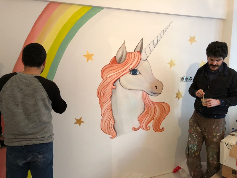 Duvar resmi boyama. Kötü hava şartları olan bir mekandaki duvar boyası canlılığını 10 yıl korurken iyi şartlarda olan bir iç mekanda bu süre 30 35 yıl kadar uzamaktadır. çocuğunuzun yatak odasını en sevdiği çizgi film karakteriyle dekore edebilir veya yatak odanızı tavanda yatıştırıcı bulutlu bir efektle zenginleştirebilirsiniz. Freks sanatı olarak da adlandırılan bu sanat dalı duvar üzerine çizilen her türlü figürü resmi ve objeyi kapsar. Duvar resmi boyama sanatı ilk mağara resimlerinden itibaren var olan insanoğlunun duygularını ifade etmesine vesile olan bir araçtır.